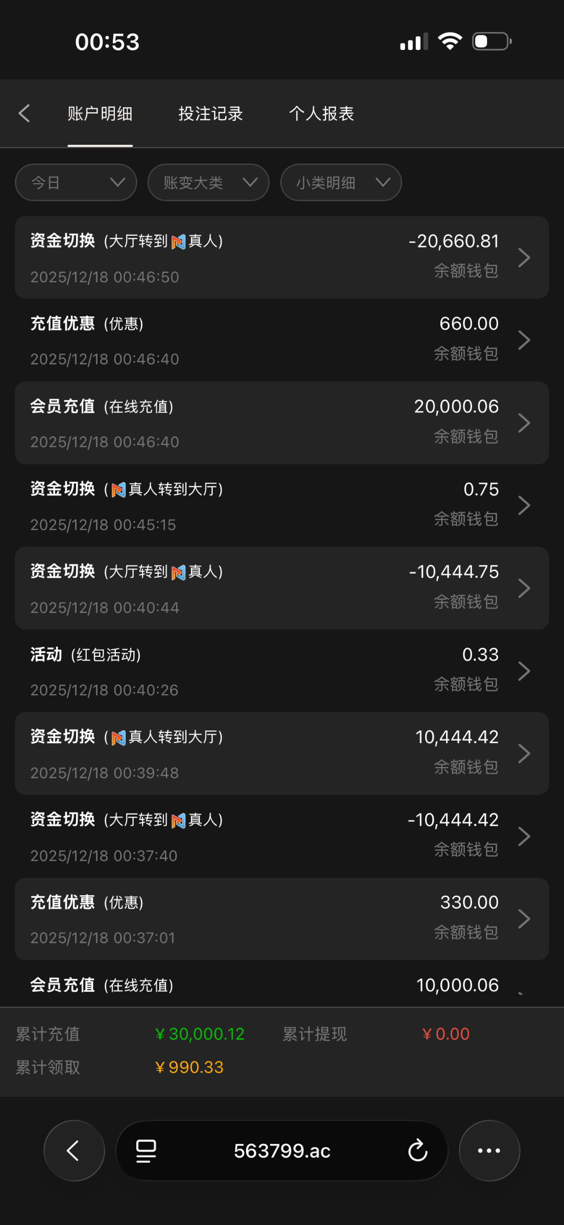 当时上个月有一笔单笔我存了10万,直接秒上了29万,我担心狗庄黑我,我拼命半夜给狗凡打电话,他没多的屁话 就是叫我等下台子很稳定 后来也是确实20分钟都提款到了