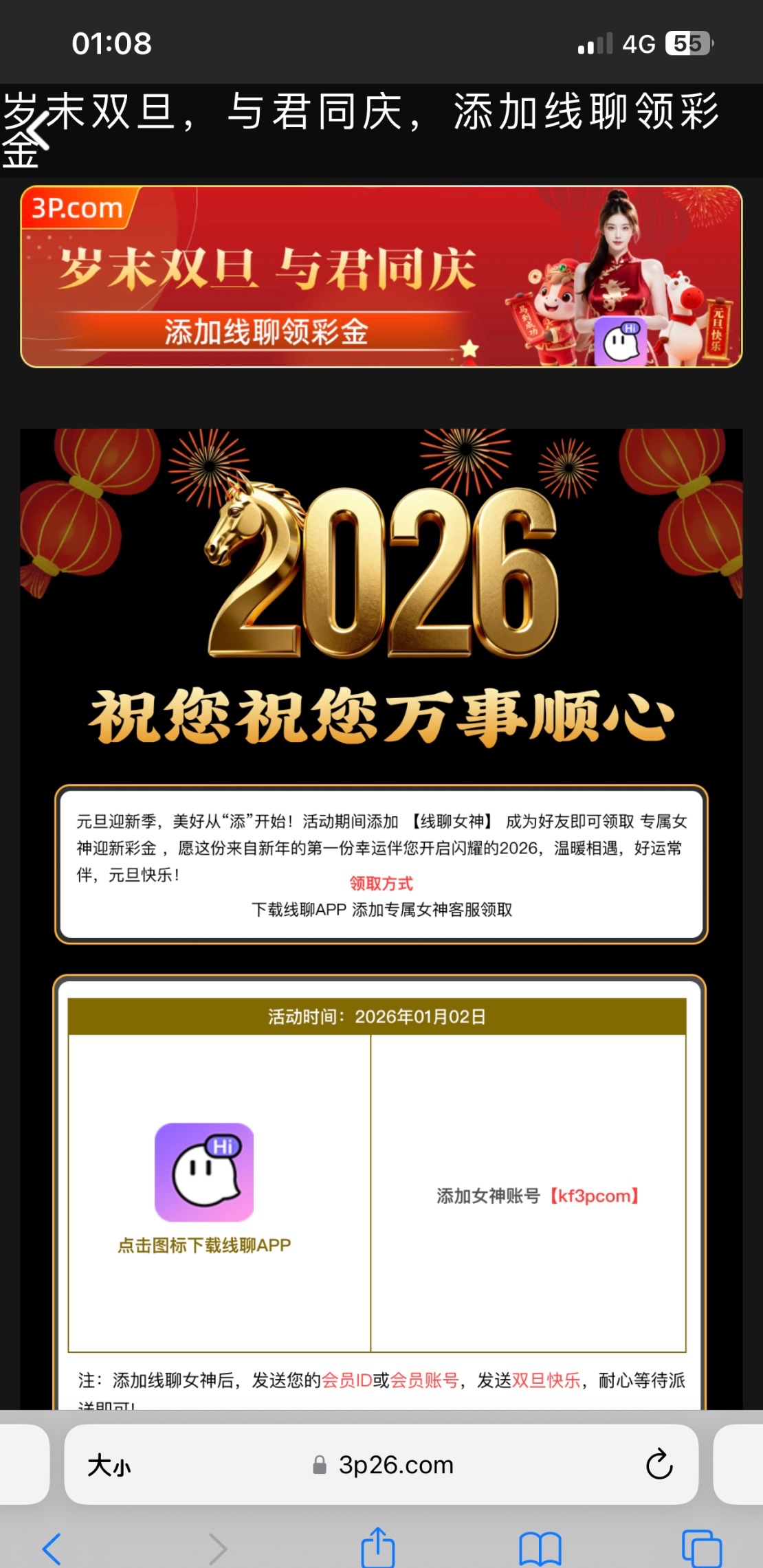 3p棋牌元旦添加线聊女神送元旦彩金