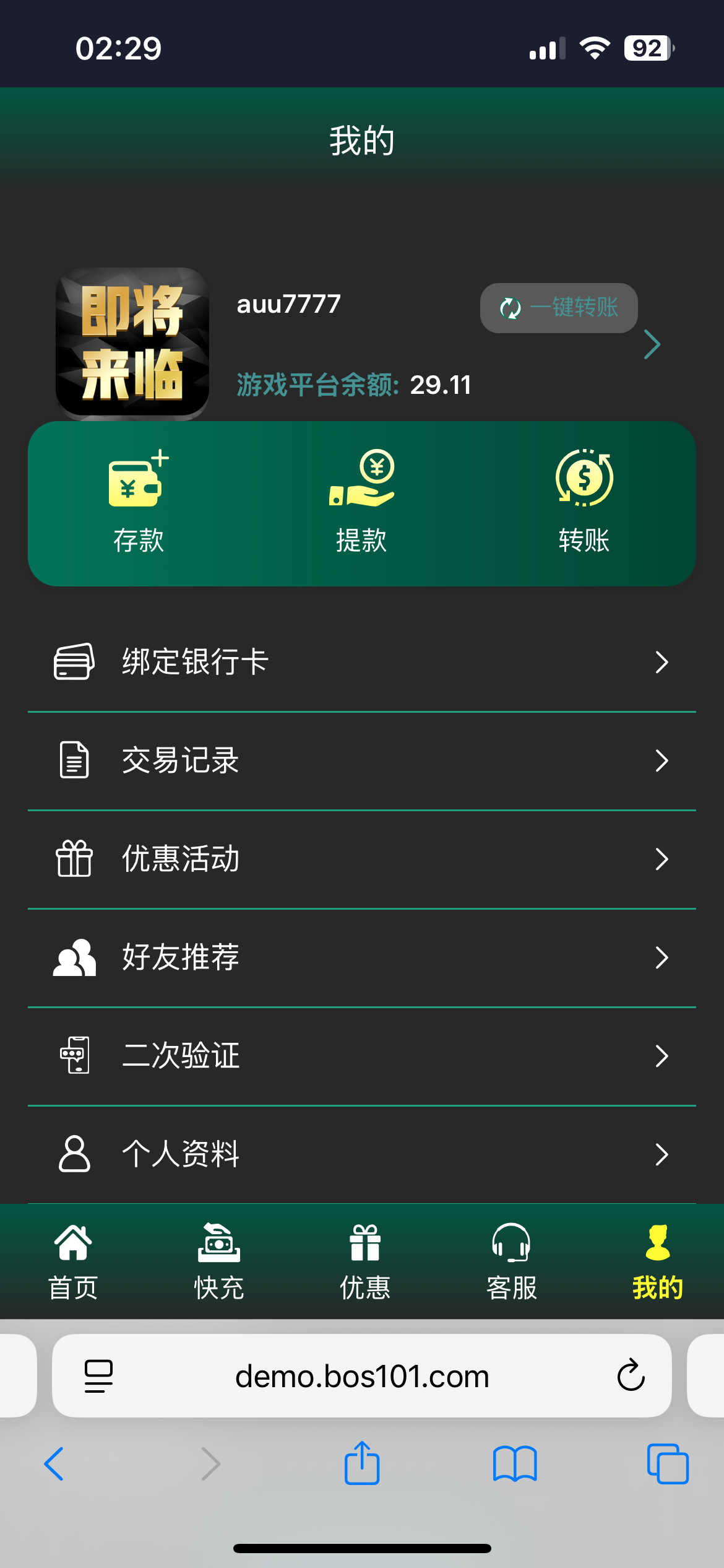 注册绑卡进入我的点击优惠活动
