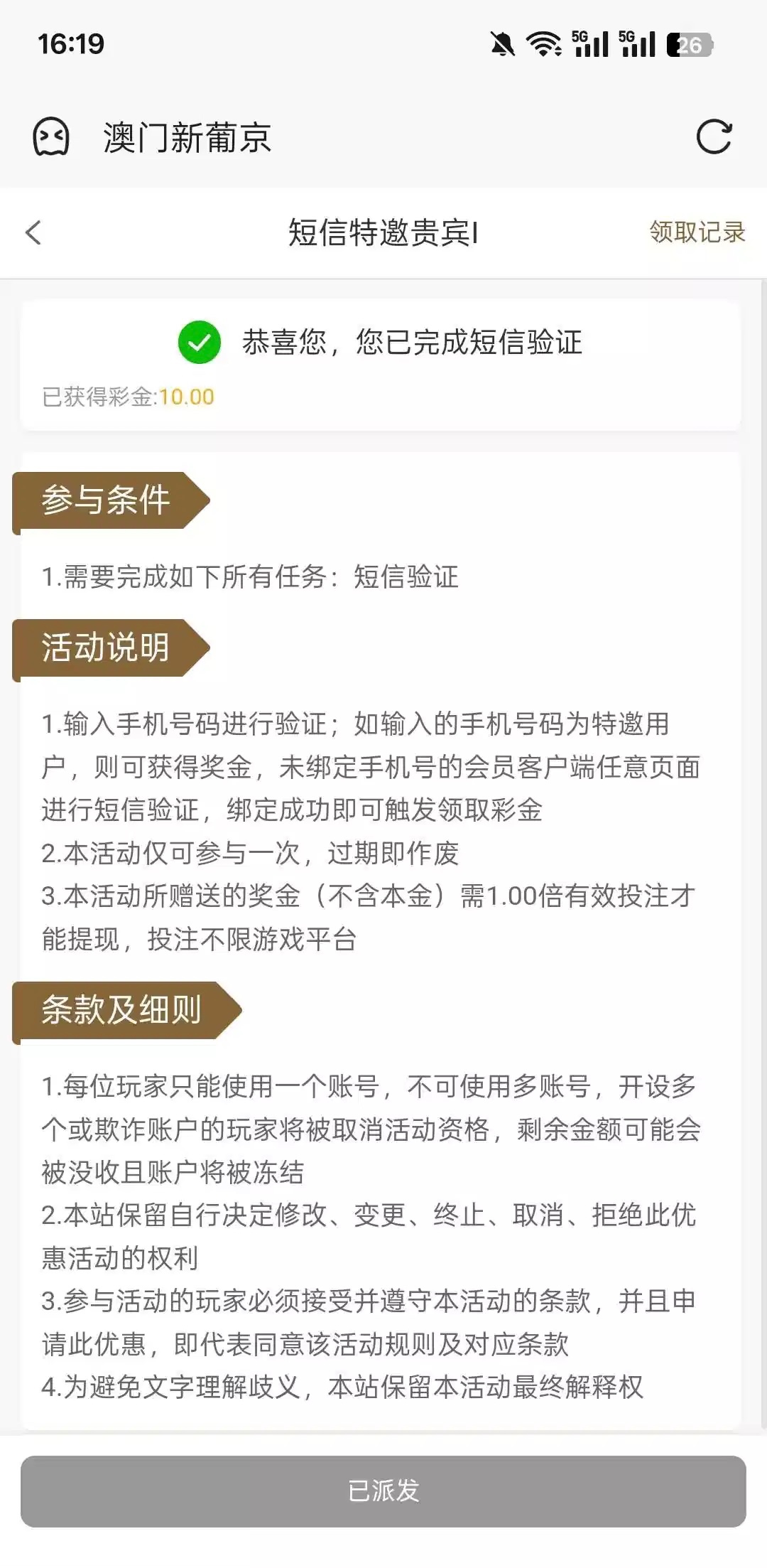 刚刚无聊看一下进去自助那里自动领取