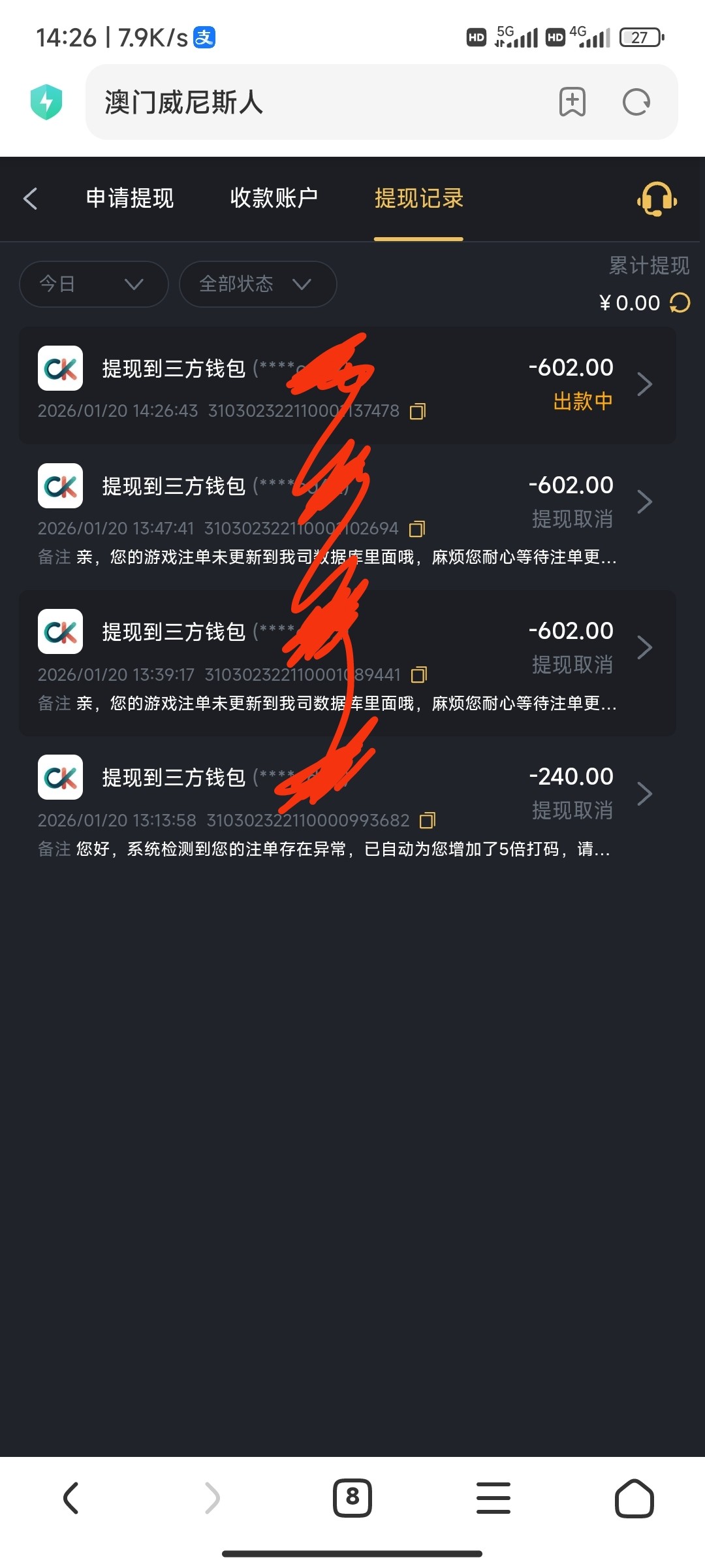 第一次提罚5倍,去打电子2000流水了第二次提说数据未更新,黑台注意了