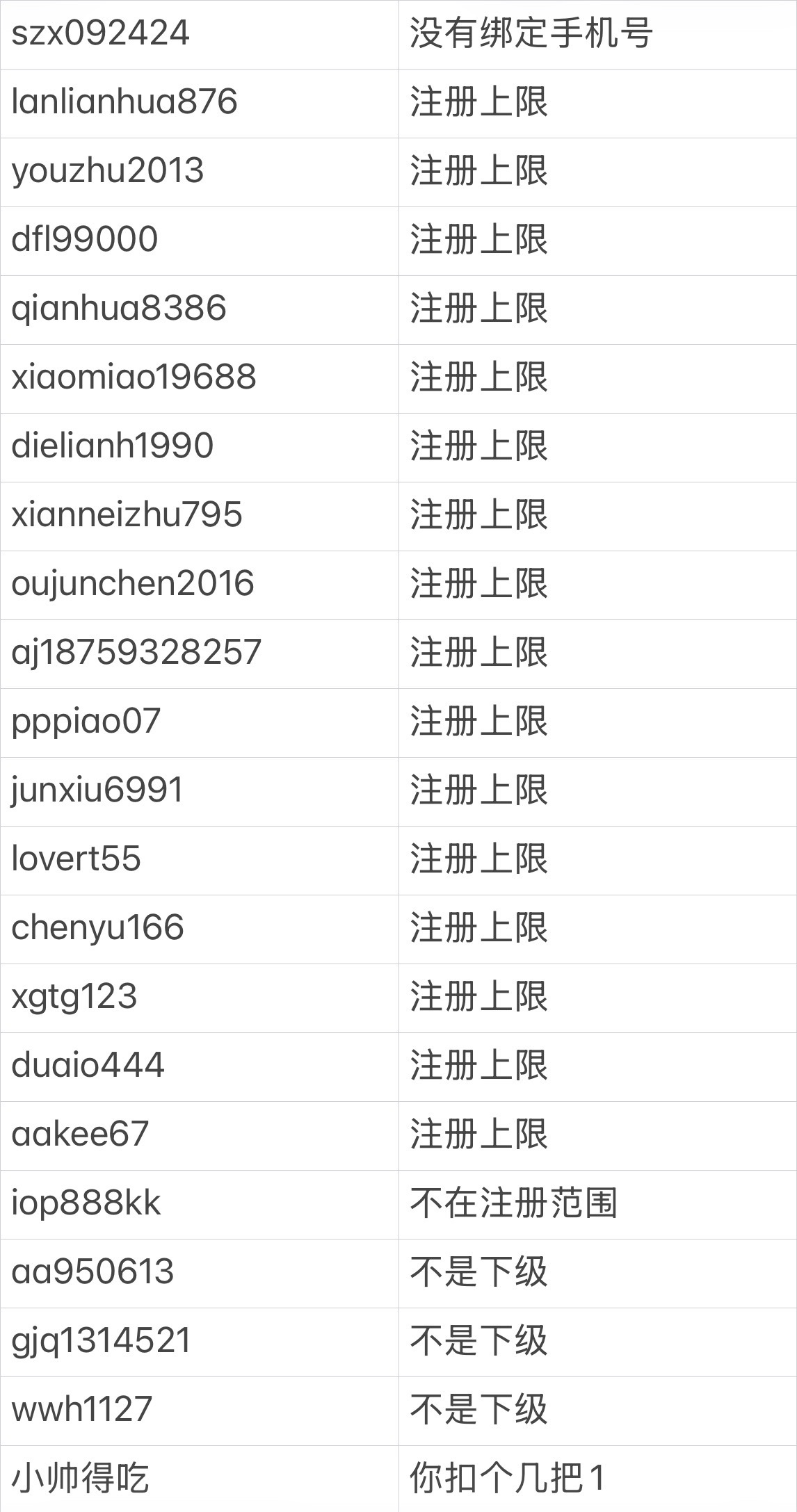 注册于1月前/重复评论/未绑定姓名/不是下级,均不送。其他的都到了,不限制游戏/3杯水/无提款上限/禁多IP
