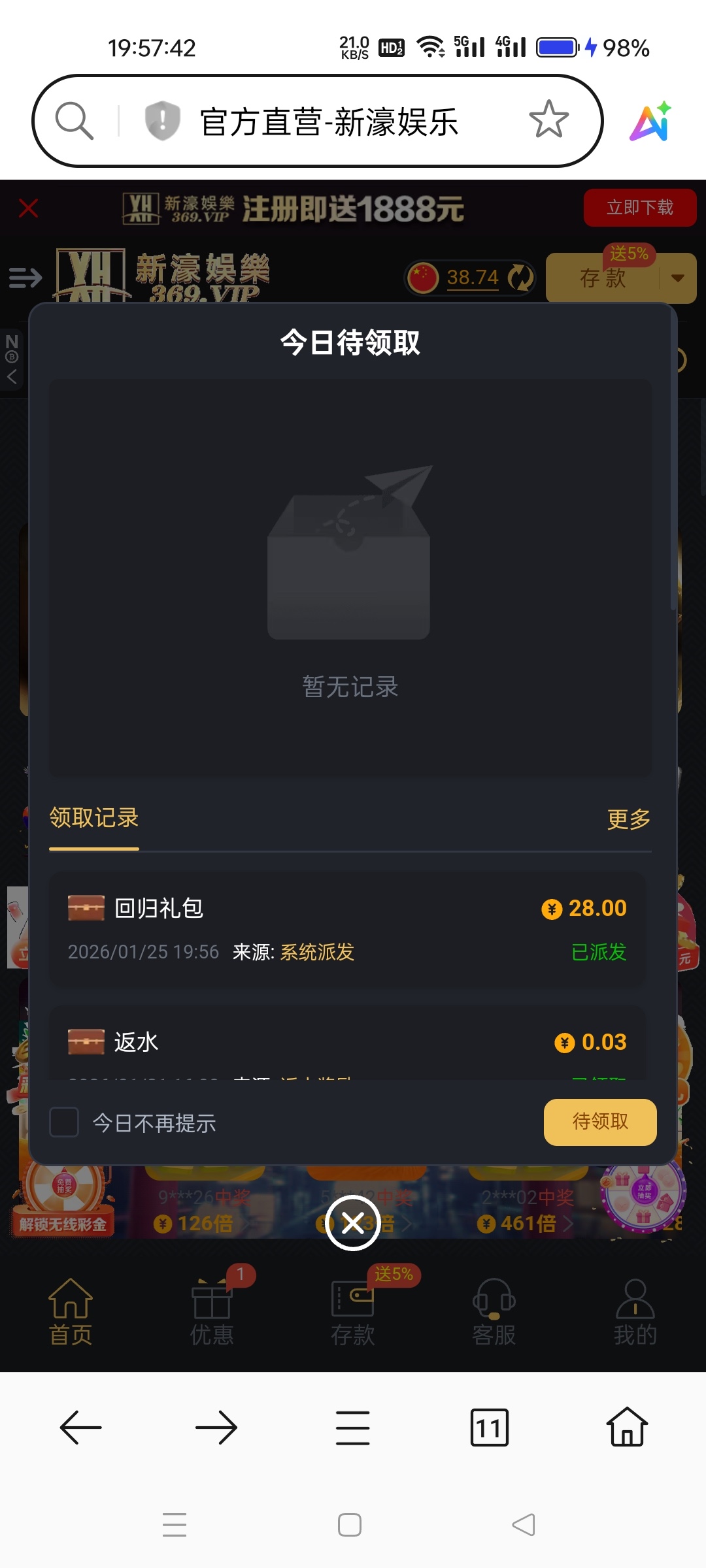 新濠娱乐充值过得都有回归彩金