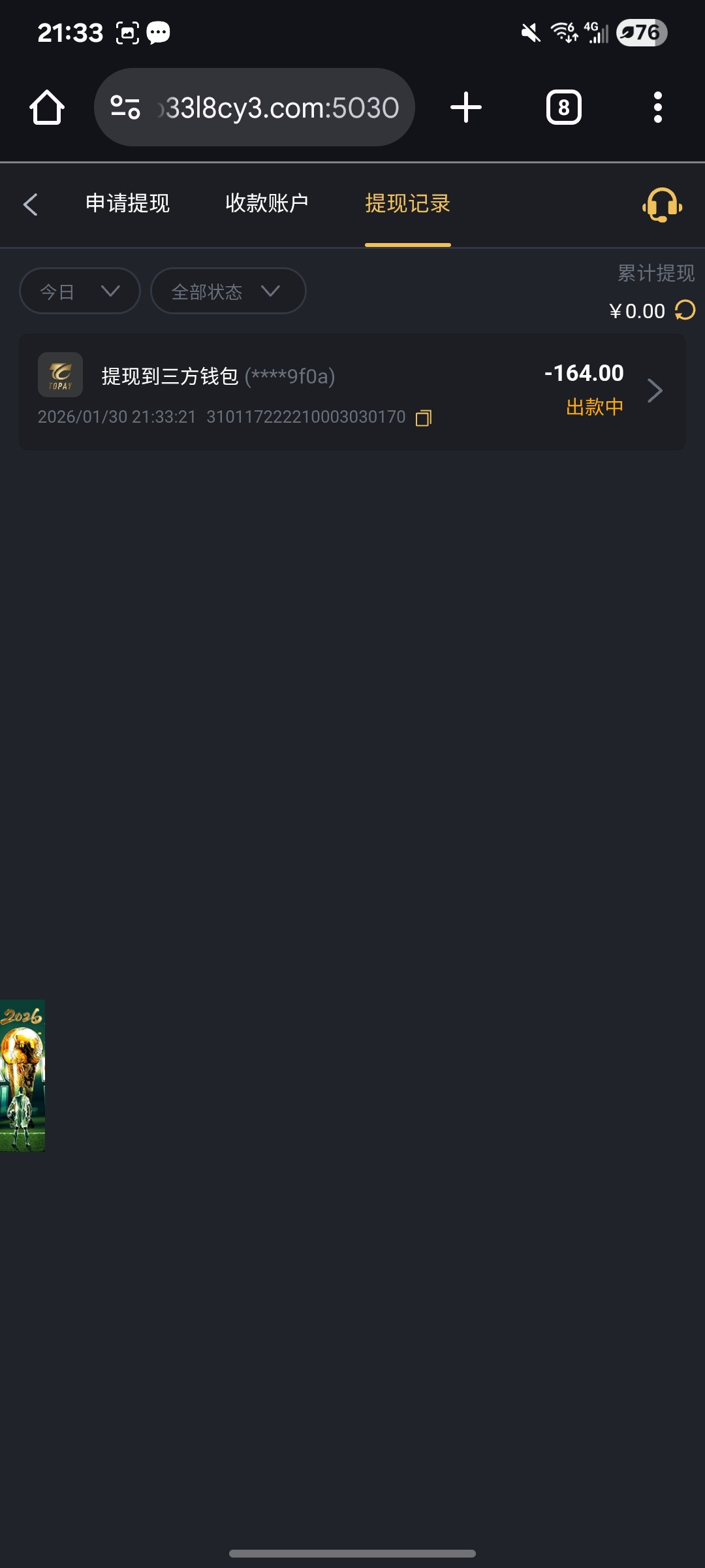 没有提现过的吗这个太子?我白天就问了我c,接到电话的上去找客服有88,不知道能不能到账
